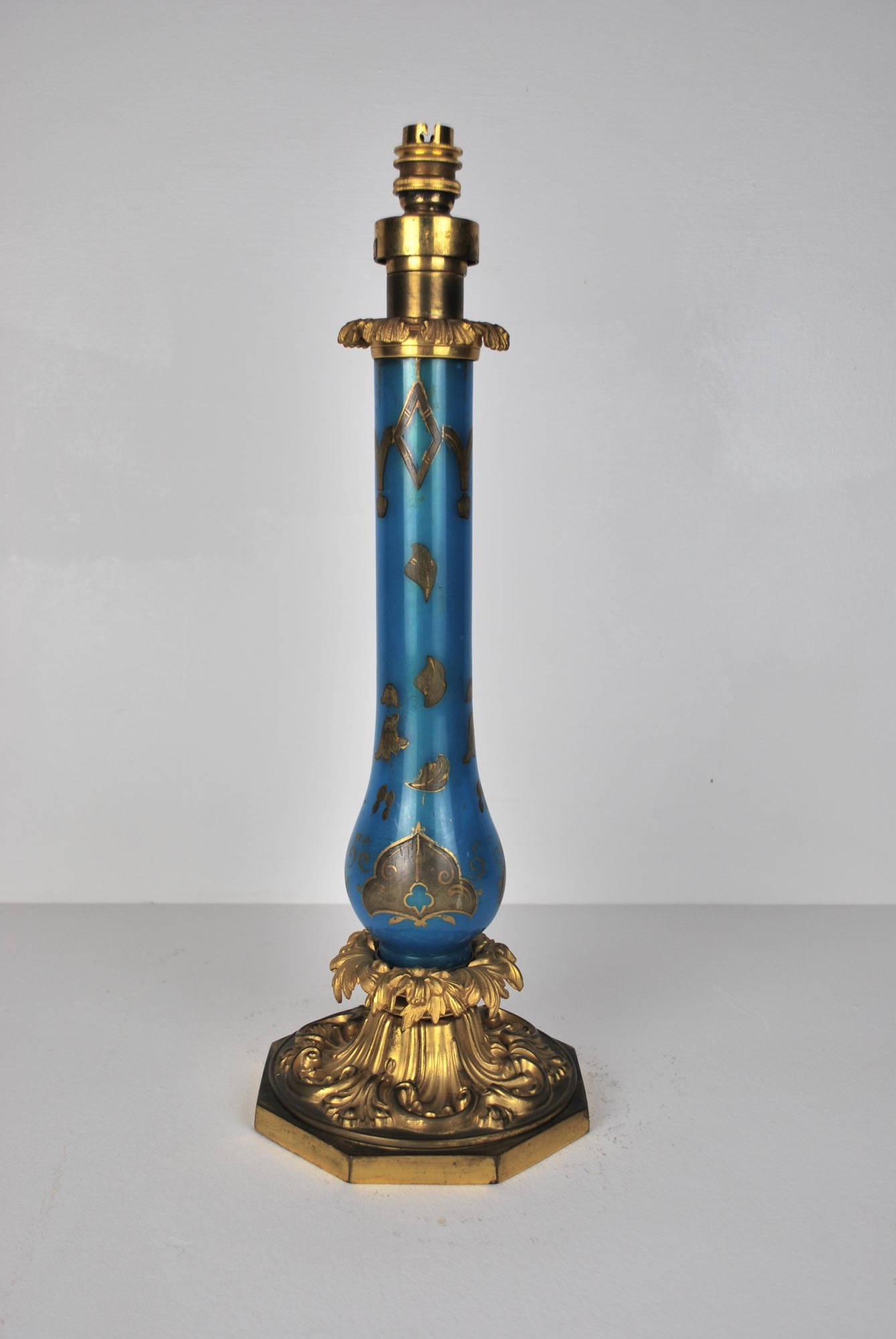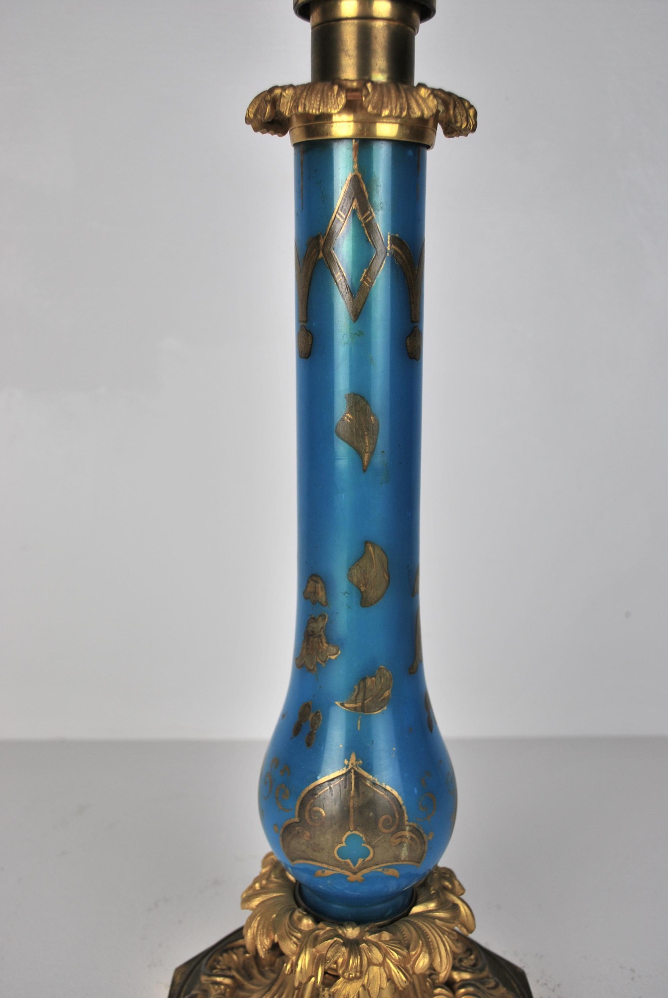 William IV ormolu and blue glass lamp base. English, circa 1840