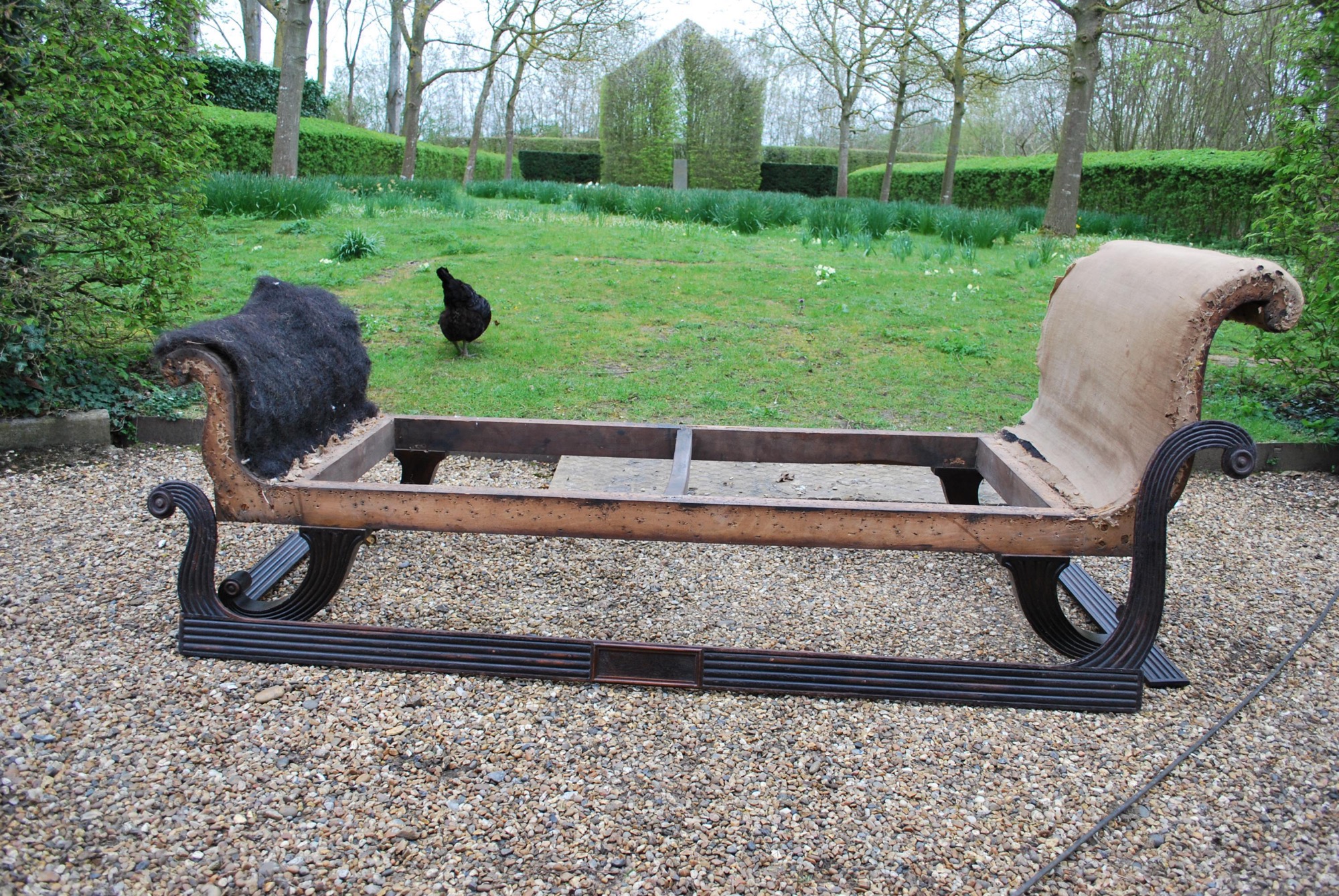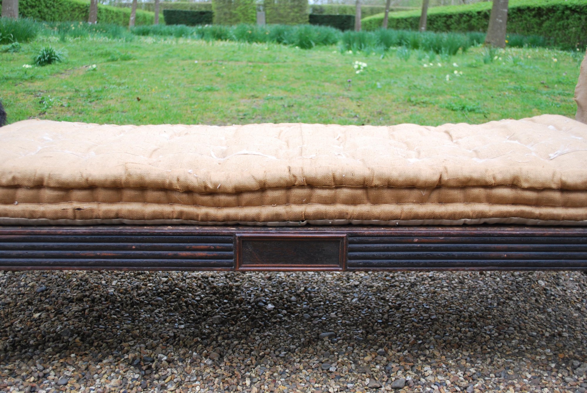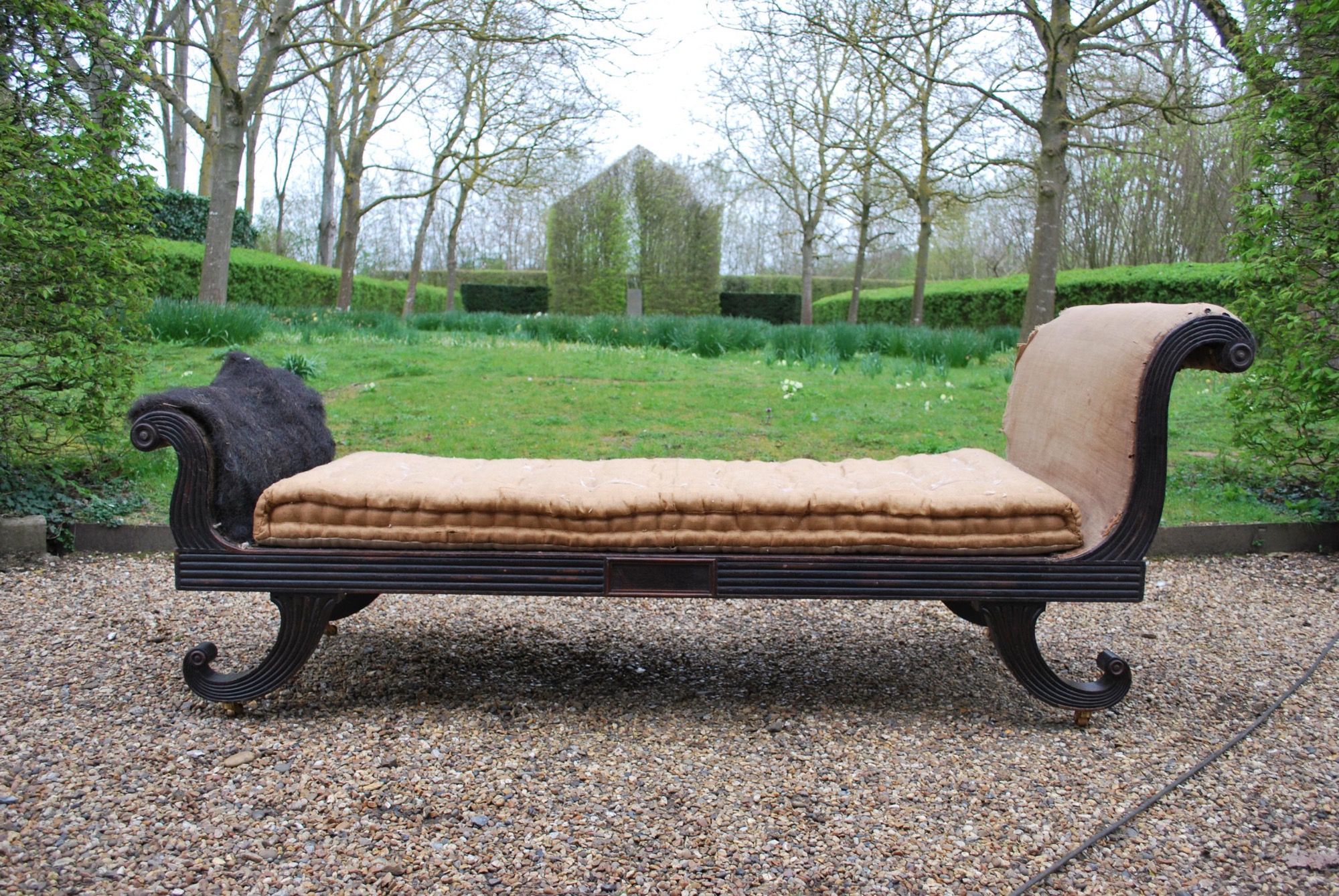 Regency period ebonised mahogany chaise, de-nailed and stripped back to the original upholstery pads, with hair squab, ready to re-upholster.