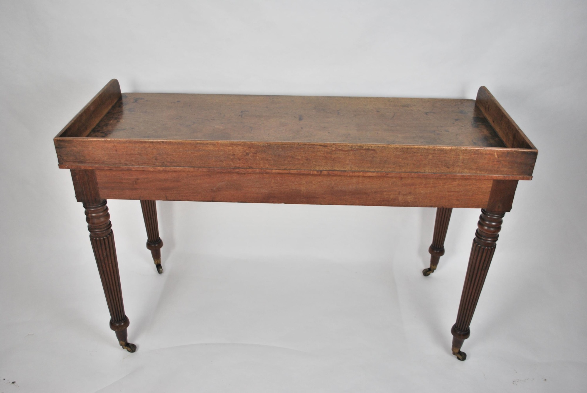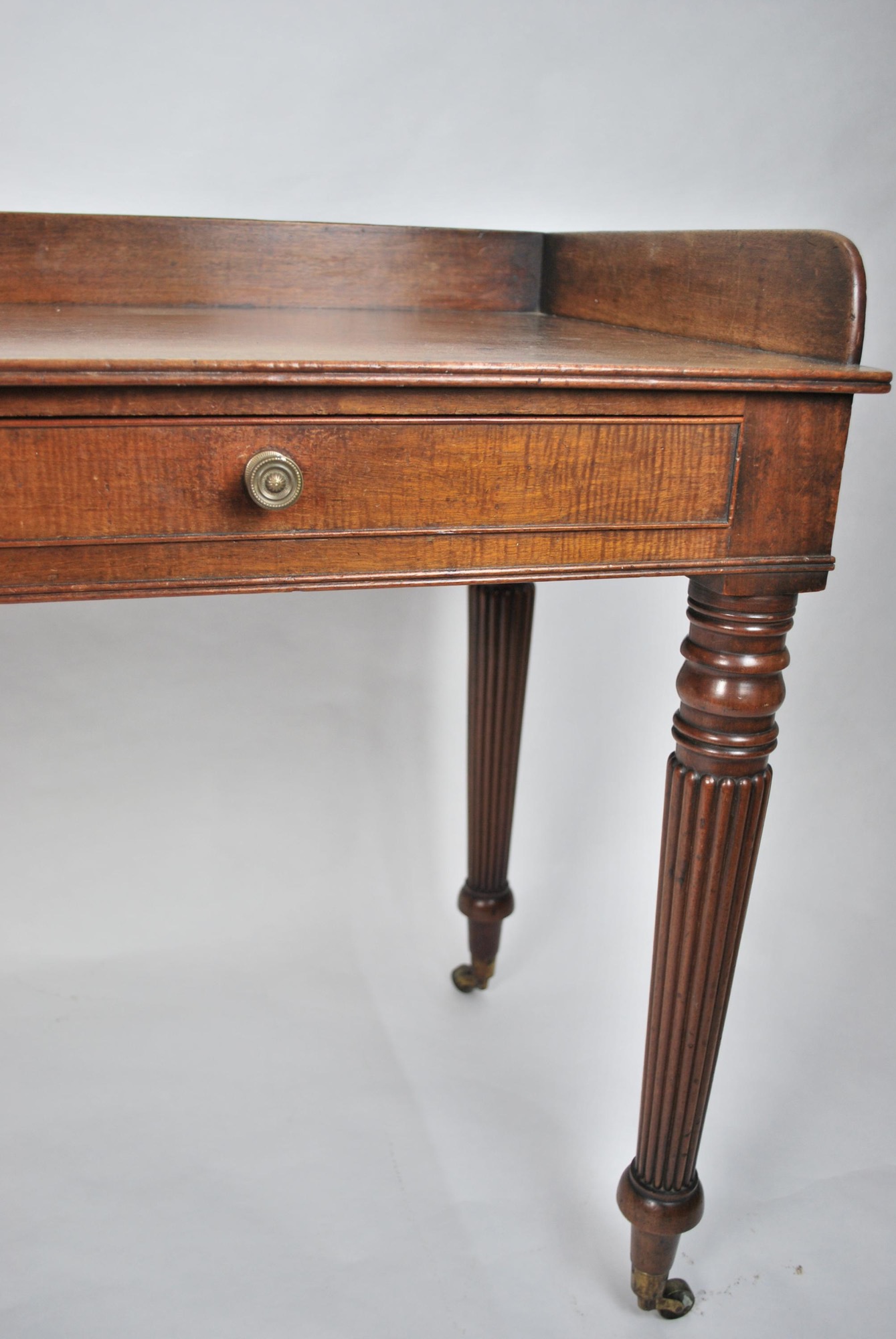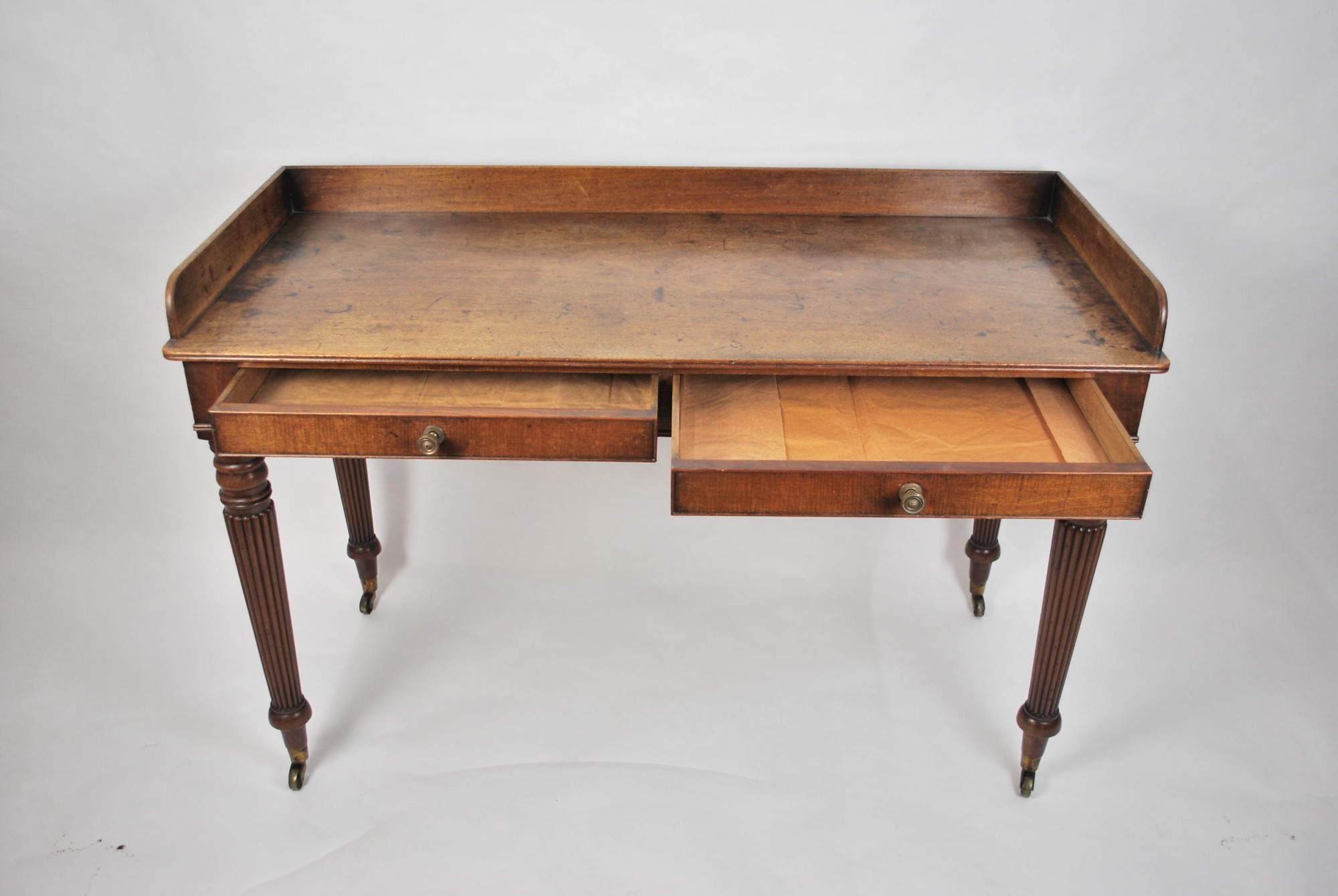 A mahogany writing desk, early 19th century, in the manner of Gillows, with two frieze drawers, above reeded supports, raised on brass castors